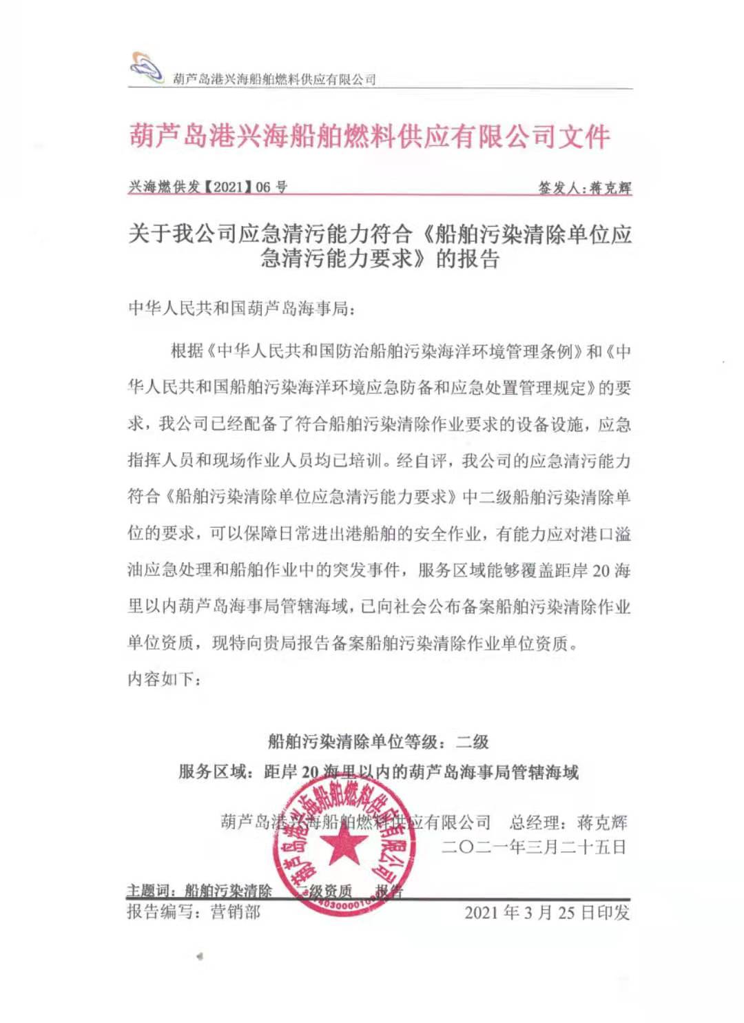 葫蘆島港興海船舶燃料供應有限公司