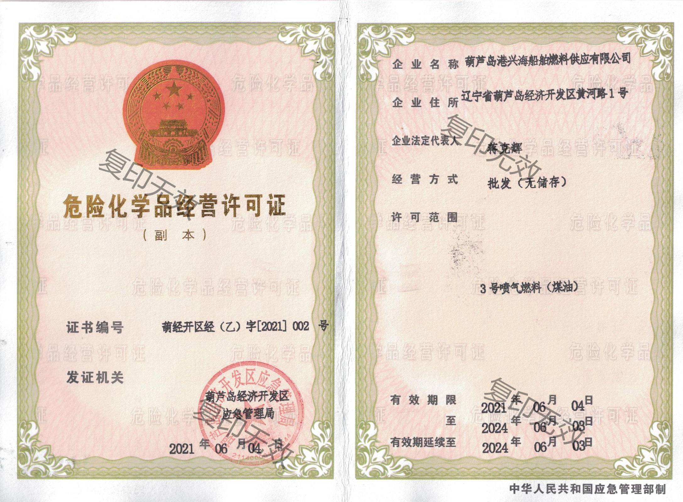 危險化學(xué)品經(jīng)營許可證(三號噴氣燃料)